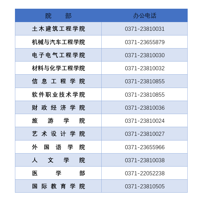 开封大学各院部联系电话