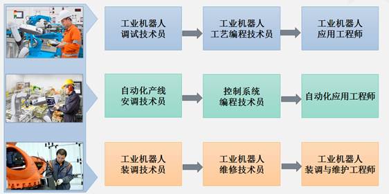 本专业毕业生从事的主要工作岗位有:工业机器人调试技术员(从事工业机器人操作与编程)、自动生产线安装技术员(从事机电一体化安装调试)、工业机器人装调技术员(从事安装调试维护人员)、工业机器人营销人员(从事工业机器人销售等人员)以及其他一些生产一线的工作岗位等。