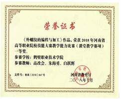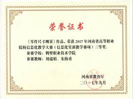 4、2019年胡亚楠、于红星、康燕子、刘兵四位老师参加河南省高等职业教育技能教学能力大赛获得“二等奖。