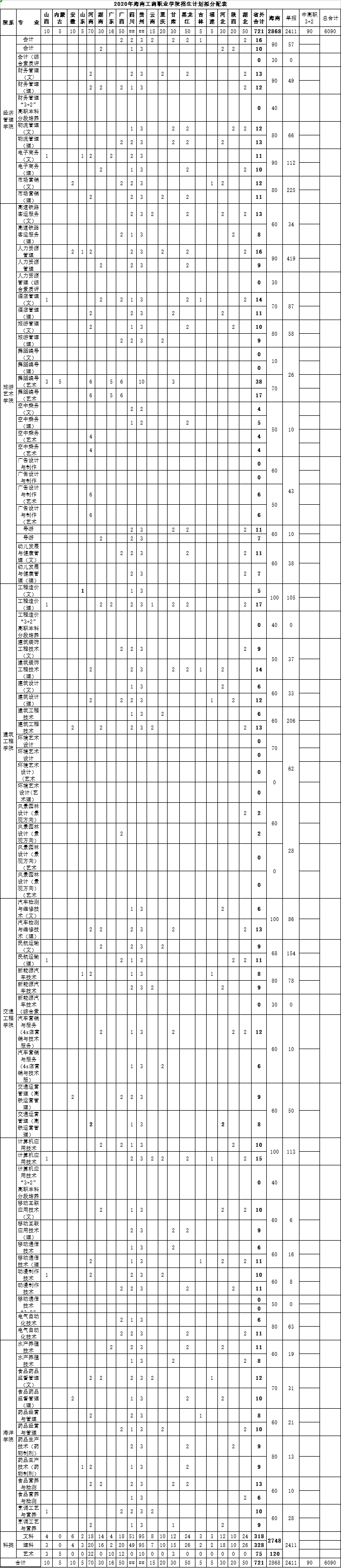 海南工商职业学院2020年招生计划