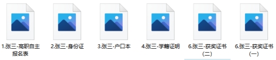 凡符合报名条件的考生均需按以下要求准备材料,因缺少材料无法取得考试资格,后果考生自负。所有材料扫描或拍摄成pdf或图片,标注材料序号(命名方式如下图),并打包压缩,在网上报名时以附件形式提交。入学报到时,将复验所有录取考生的材料原件,凡弄虚作假者一经查出,取消录取资格。