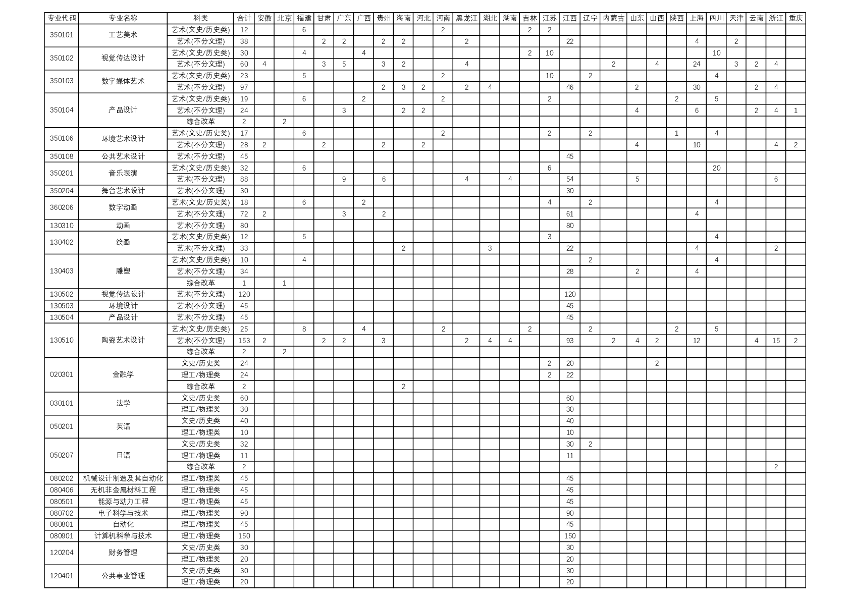 景德镇艺术职业大学2024年本科分省分专业计划表