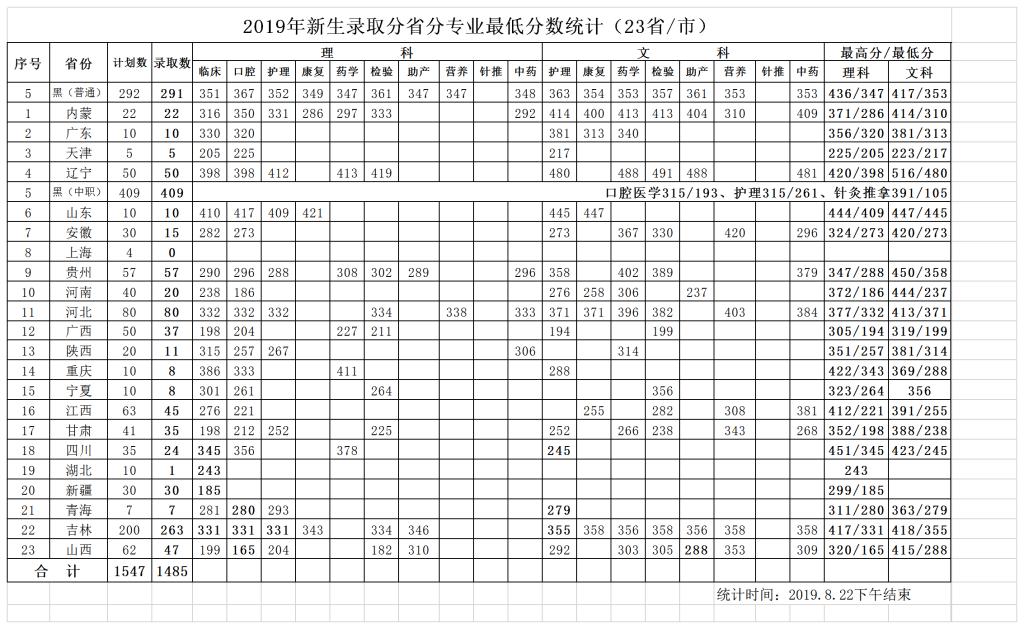 2019年我校在各省录取分数查询